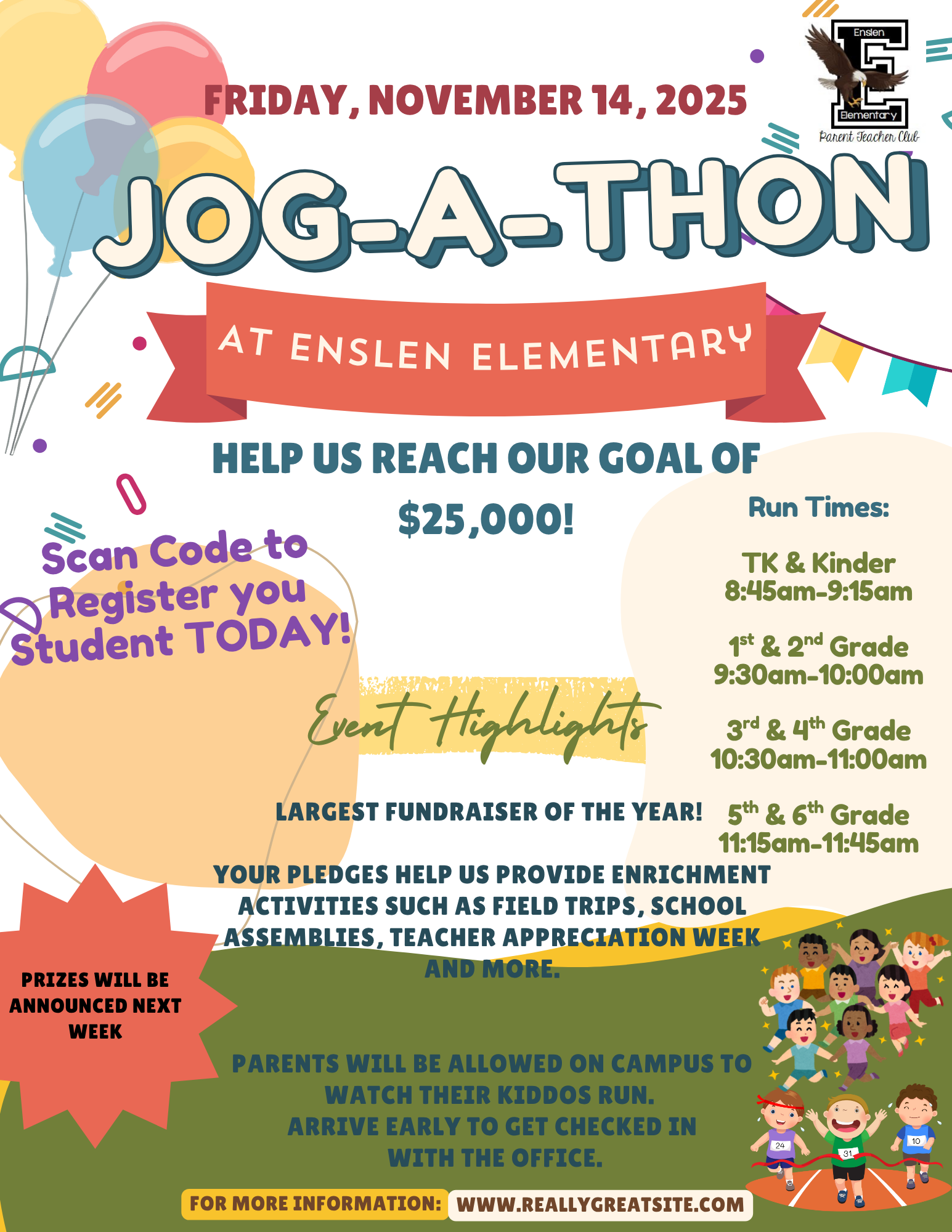 The Jog-a-Thon is a great opportunity for our students to get active, enjoy some fresh air, and raise funds for enrichment programs and field trips. Whether your child is running, walking, or cheering on their friends, it's going to be a fantastic day!